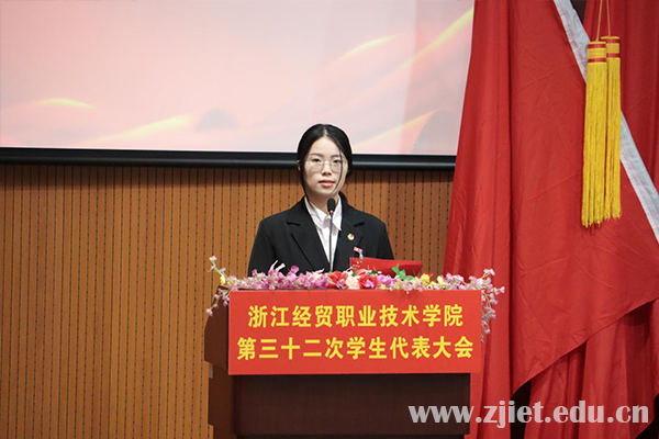 校学生会执行主席应柔怡作题为《砥砺奋进新征程,用心谱写新华章团结带领经贸青年为学校“双高建设”贡献青春力量》的工作报告,回顾总结第三十一次学生代表大会以来的各项工作与主要成绩,并对下一阶段的学生会工作赋予新的希望。